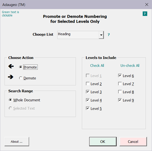 - Promote or Demote Specific Numbering Levels