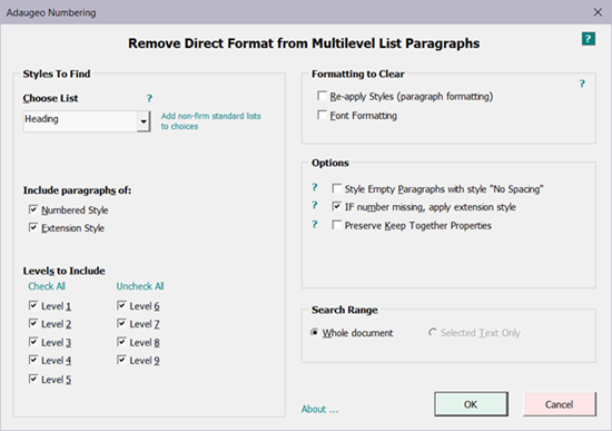 Adaugeo Numbering™ is a robust suite of tools designed specifically for paragraph numbering in legal documents.
