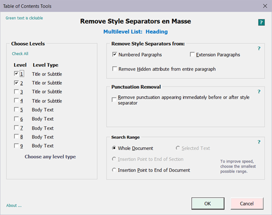 With this tool, you can convert directly formatted in-line headings to standalone headings or to in-line headings with style separators.