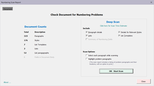 - Check Document for Numbering Problems