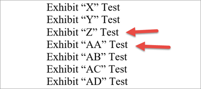 Some lawyers find Word's numbering following the 26th item to be unacceptable when using simple sequence numbers. The screen shot below illustrates that -- after "Z", it numbers AA, BB, CC etc.